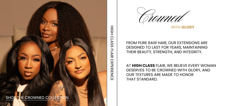 HighClassFlair signature Eden Curl hair is 100% raw and unprocessed, crafted for the ambitious woman who values bold texture and divine elegance. This hair features tight, springy curls that are soft, silky, and full-bodied, exuding luxury and confidence. Rich natural brown color enhances the depth and radiance of every coil. Each strand is sourced, selected, and inspected for the highest quality, ensuring durability and resilience. With proper care, this hair lasts 2–3+ years, moving naturally and luxuriously like your own.